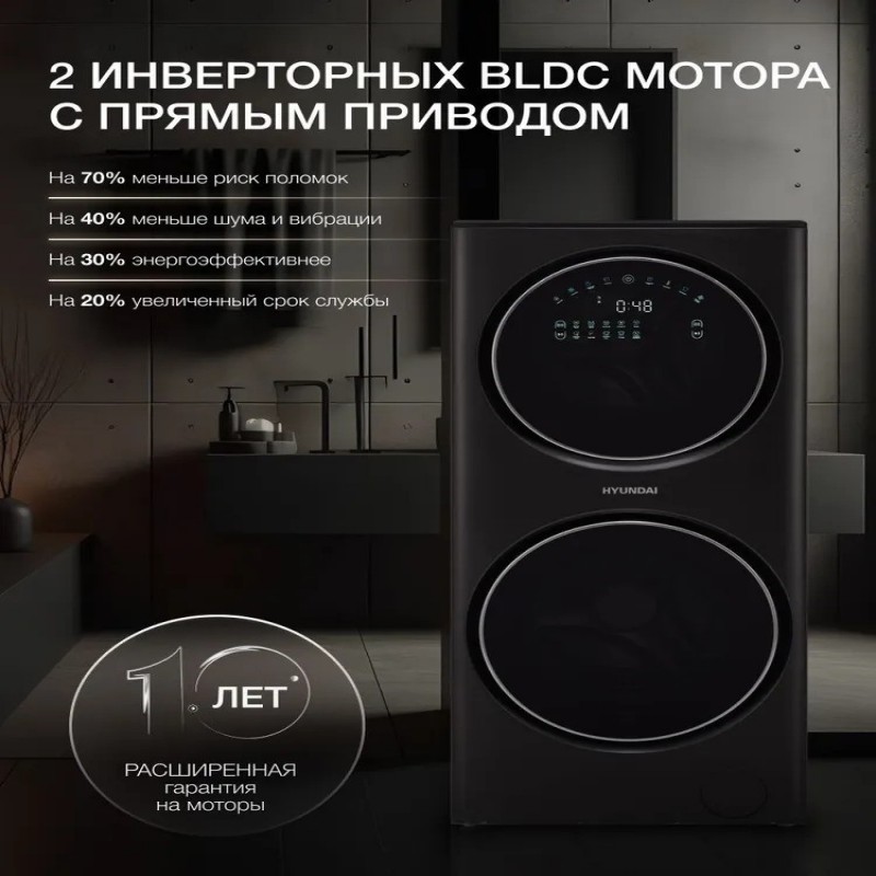 Добро пожаловать в будущее стирки с уникальной стирально-сушильной машиной HYUNDAI WMD9423. Это не просто устройство, это симфония инноваций и комфорта, созданная для вас и вашего дома.